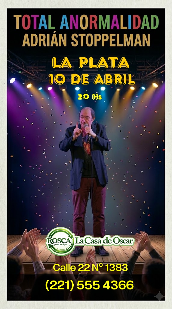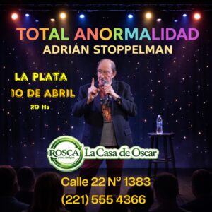 El viernes 10 de abril, desde las 20 hs, viene Adrián Stpppelman con su nuevo show “Total Anormalidad”. Es su presentación N° 50 en La Casa… La función anterior nos reímos a sala repleta. Para esta segunda, ya tenemos el 80 % vendido dos días antes. Reservan al wssp. 221 5554366. No vengan sin reserva.