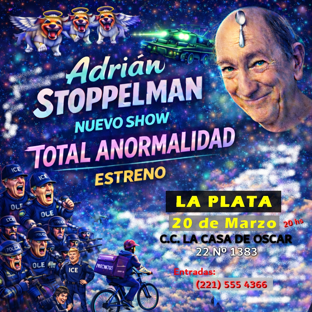 Luego de los éxitos de su show «Inteligencia Artificial», el humorista Adrián Stoppelman nos trae uno nuevo para este díficil 2026. Estamos contentos por su a vuelta a La Casa…en su visita 49, con su nuevo show “Total Normalidad”. Ya están a la venta las entradas para el 20 de marzo. No duerman, al 28 de febrero ya tenemos el 50 % vendido. Si no pueden, vuelve el 10 de abril…