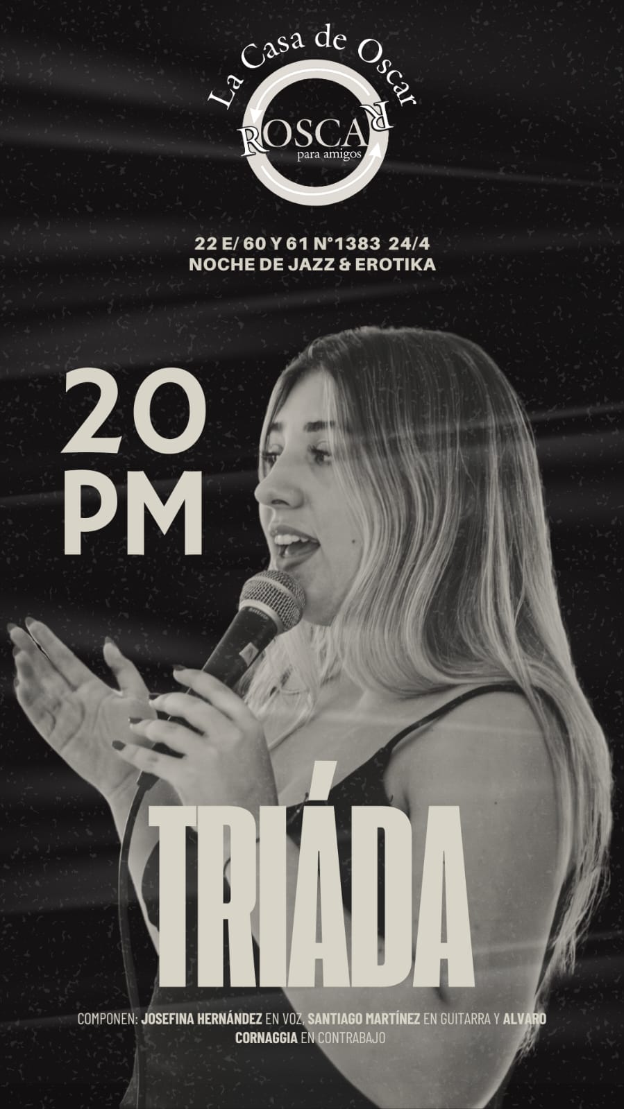 «Triáda» propone un repertorio de clásicos del Jazz y algunos agregados. Con Josefina Hernández en la voz, Santiago Martínez en guitarra y Alvaro Cornaggia en contrabajo, evoca un ambiente cálido, ideal para aquél que busca desconectarse y relajar.