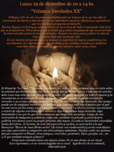 El Ritual de “La Casa…” Velamos Envelados, en cada edición, propone una revisión sobre la amistad que hemos tenido con algún amigo que ya no esté cerca.